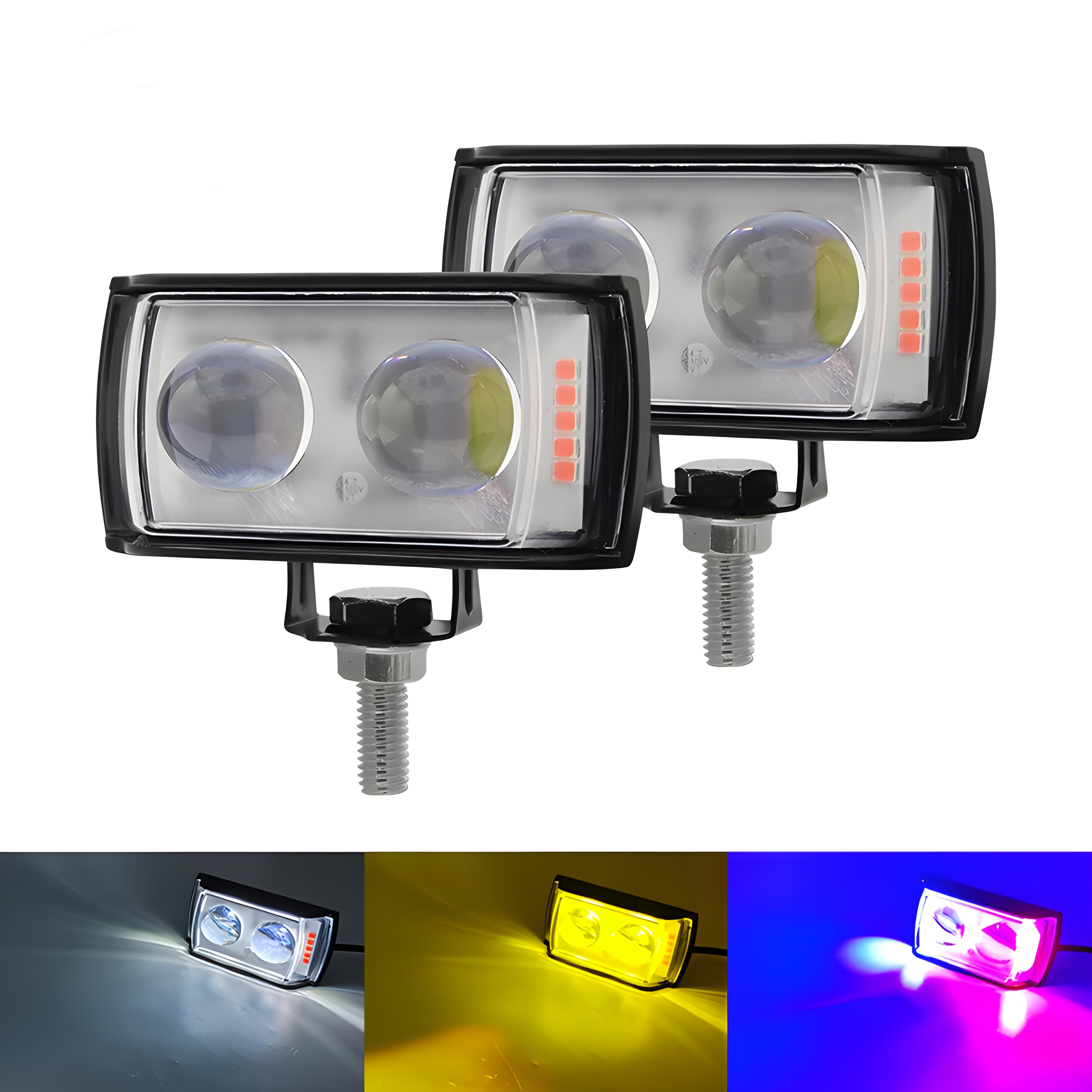 1 Pcs Bike Light Dual Lens Projector Driving LED Fog Work Light 4 Color Light Dolphin Projector Spotlight For Bike Car Jeeps White Yellow Mix Flash Bar Light