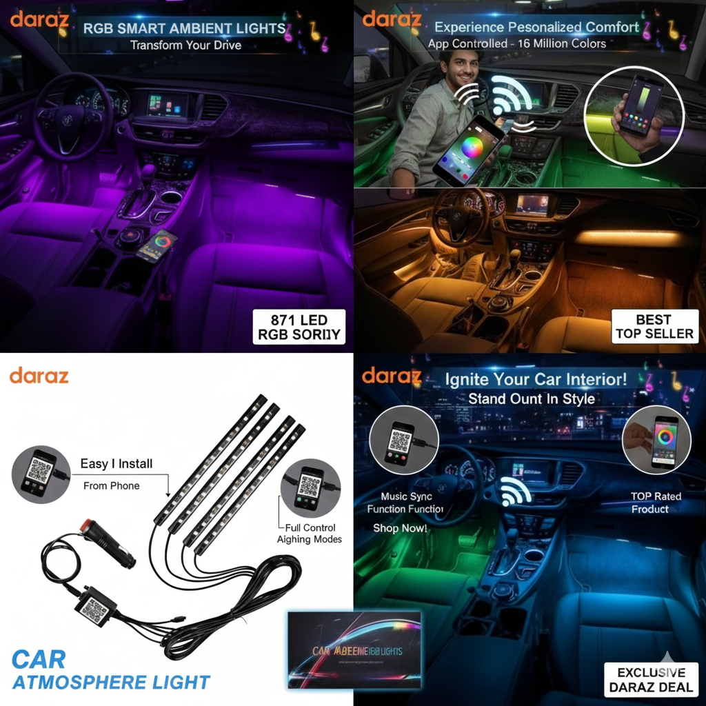 Car Atmosphere Light (12LED Model) / Car Ambient Light / Smart Car LED Foot Light / RGB Backlight / Mobile App Controlled 12V