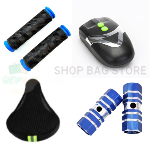 Pack of 4 Excel Foot Rest For cycle 1 Pair Anti-Slip Handlebar Mountain Bike Net seat cover 3 LED Bicycle Front Head Light Cycle Light Cap Bell