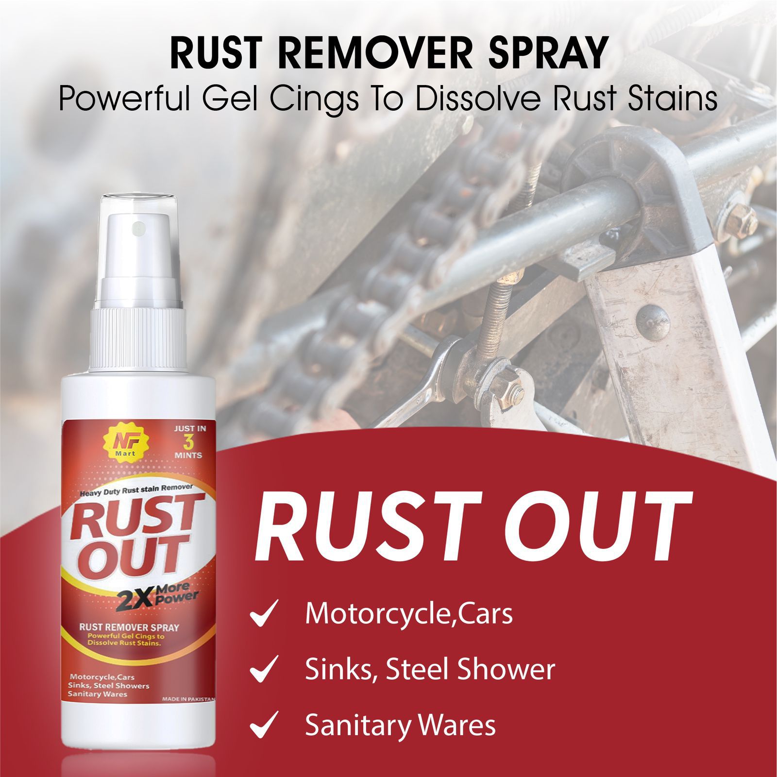 Rust Remover Spray Zang Remover Spray For Bike, Cars And All Spare Parts RUST OUT