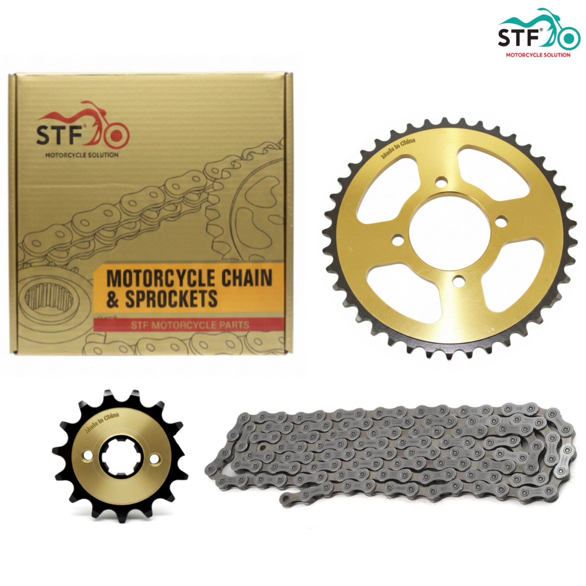 STF Imported Chain Kit CG125 38 / 15T GOLD - High in Quality Silver Chain Sprocket Kit for CG125 GOLD
